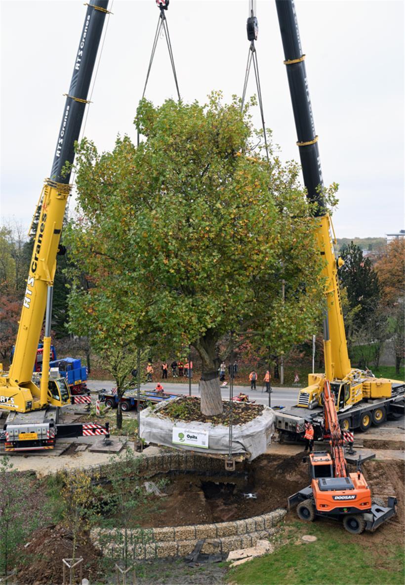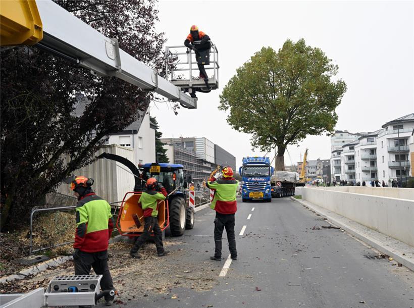 29. Oktober: Alte Bäume soll man nicht verpflanzen: Das Sprichwort gilt Ende Oktober in Esch nicht. Denn hier wird eine zwischen 80 und 100 Jahre alte, 110 Tonnen schwere Platane am Lallinger Ortseingang in den Wobrécken-Park verlegt. Ein spektakulärer Umzug.