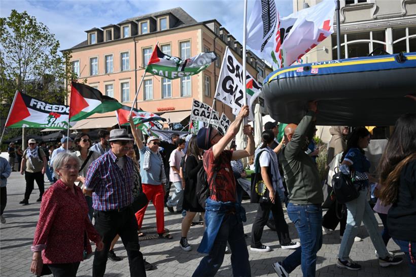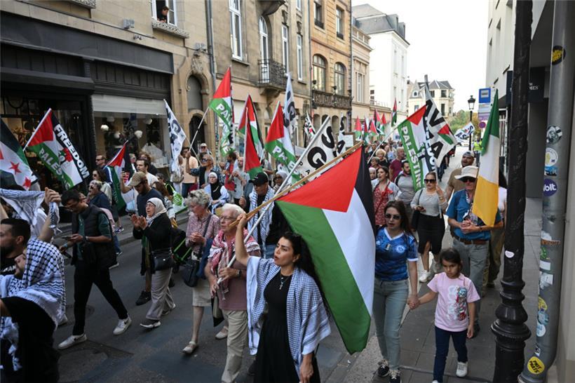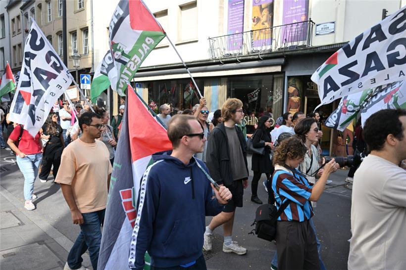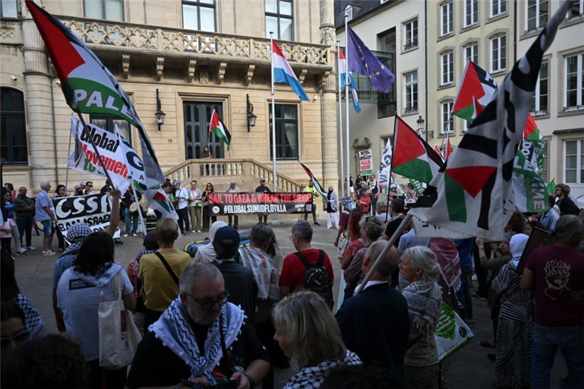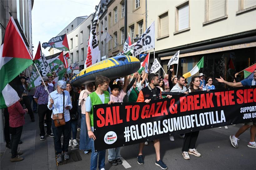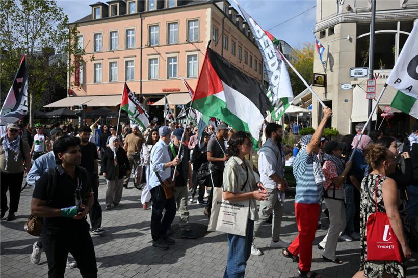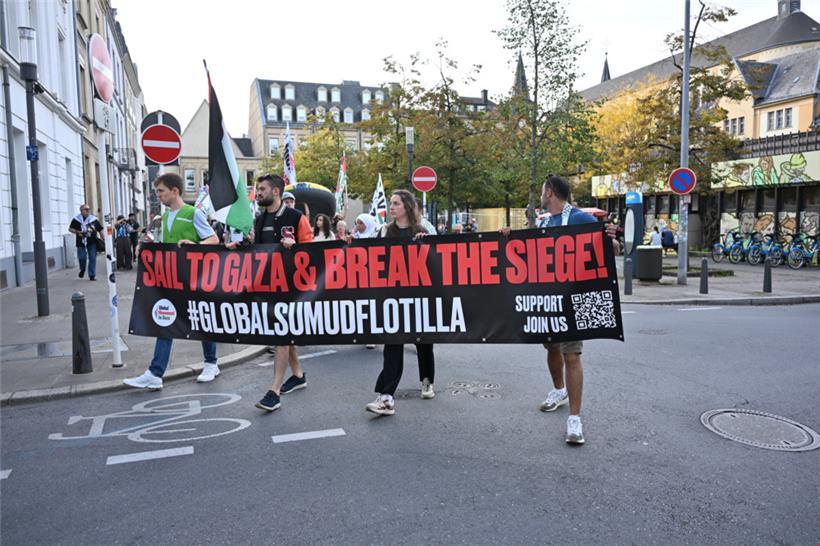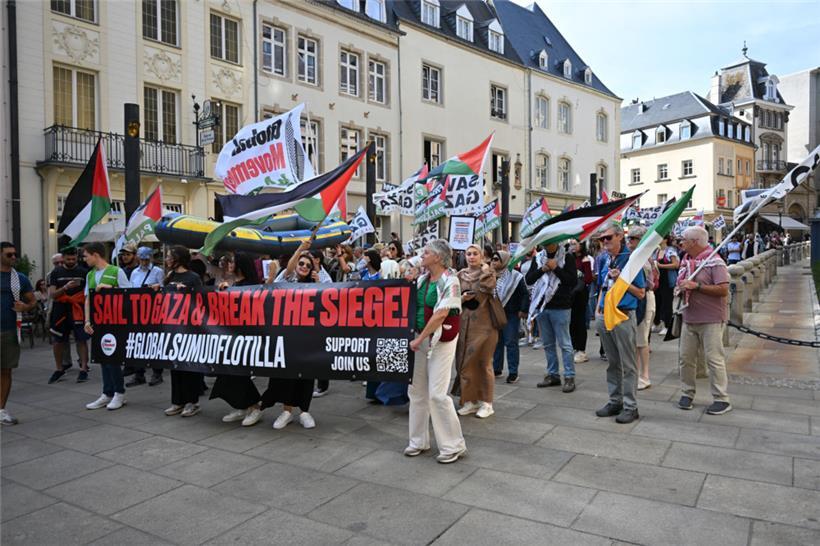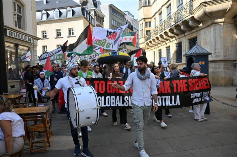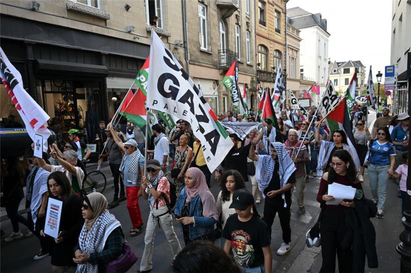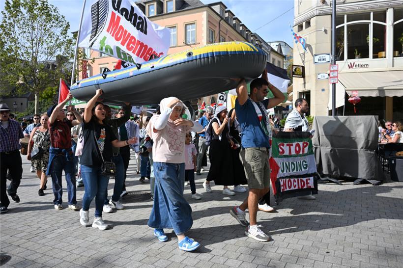 „Stoppt den Genozid“, „Sanktionen, jetzt!“ und „Unterstützt die Flotilla“: Mit diesen Parolen zogen Demonstranten am Samstagnachmittag durch die Straßen Luxemburgs: Um 15 Uhr ging es am Glacis los. Der von der Bewegung „Letz Act for Palestine“ organisierte Protest soll wöchentlich stattfinden. Unterstützt wird die Aktion durch das „Comité pour une paix juste au Proche-Orient“, Greenpeace, Amnesty International und die „Action solidarité tiers monde“.