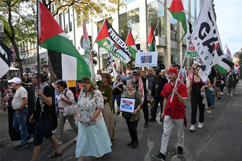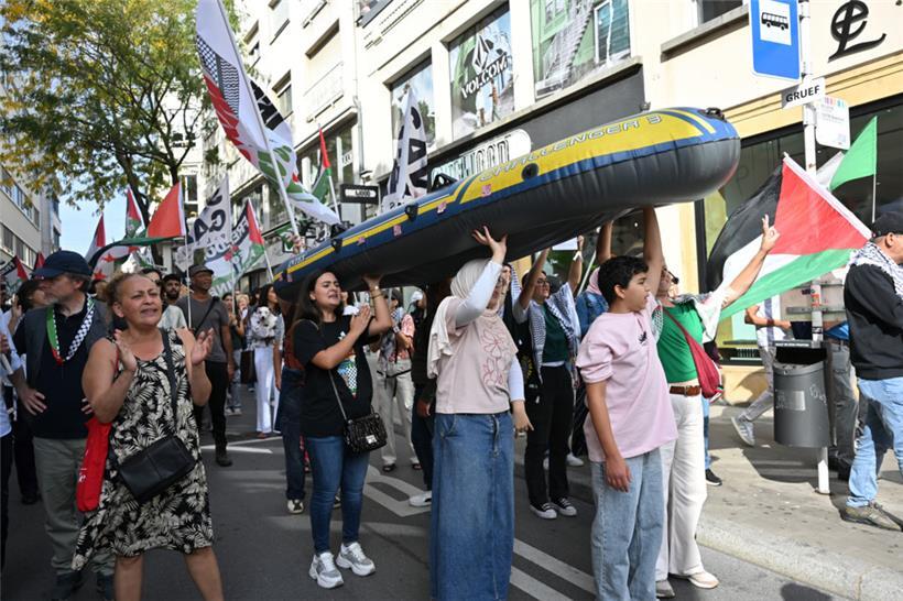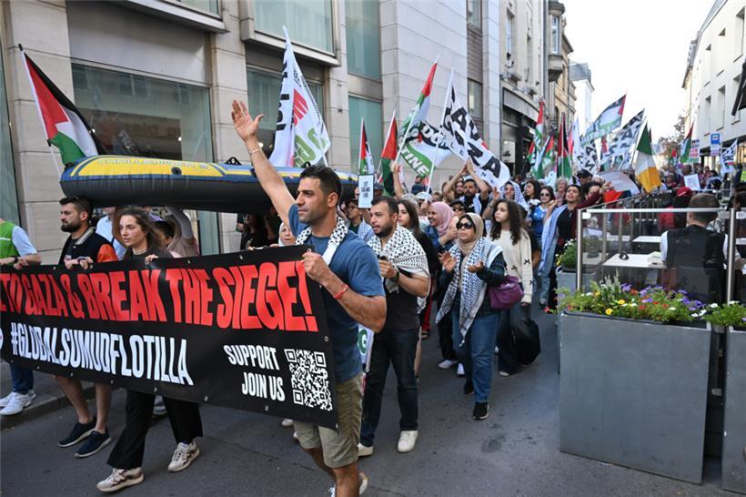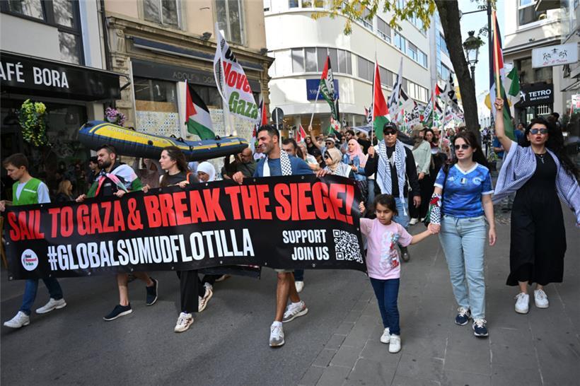Der Protestzug am Samstag lenkte besondere Aufmerksamkeit auf die „Global Sumud Flotilla“ Foto: Editpress/Claude Lenert