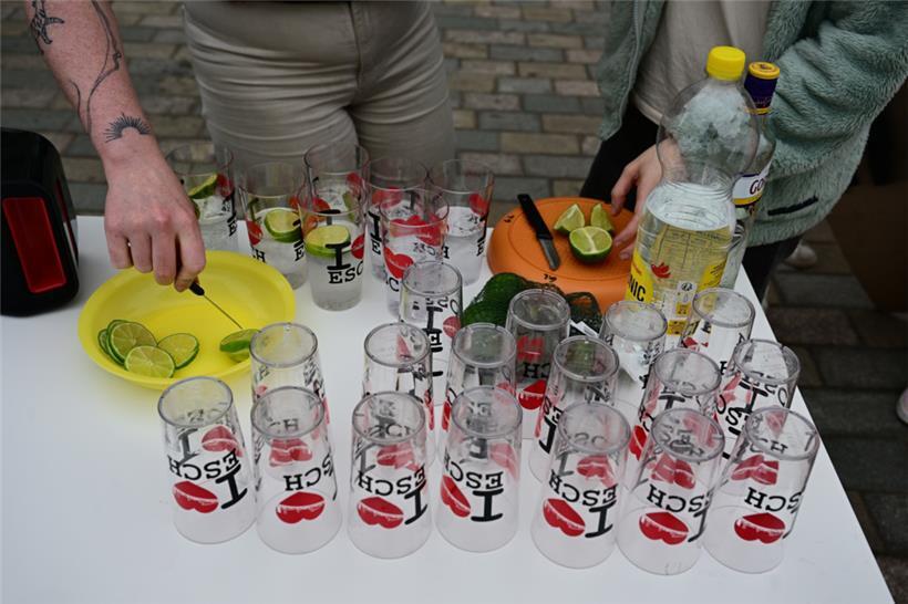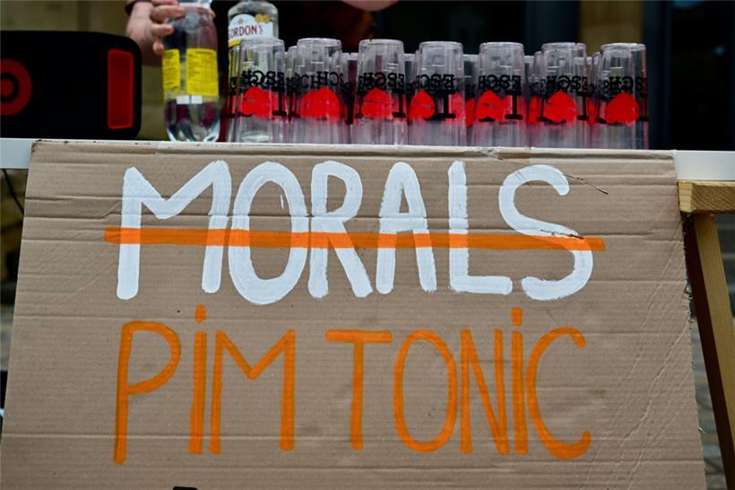 Rund ein Dutzend Aktivisten waren der Aufforderung gefolgt. Sie zeigten einen Banner mit der Aufschrift „Pim Knaff Démission“, Untertitel „Schluss mat Léien a Steierhannerzeien“. Auf Pappplakaten stand derweil „Pim Shady“, „Tax Fraud is a crime“, „Stop the Pimshow“ und „DP-Greens-CSV: Condemm Tax Fraud“ zu lesen. Zudem hatte Richtung22 einen Cocktailtisch vor dem Rathaus aufgestellt und versorgten die Passanten mit Gin Tonic bzw. „Pim Tonic“. Dazu lief die passende Musik aus der mitgebrachten Anlage wie zum Beispiel Pink Floyds „Money“, „I need a Dollar“ von Aloe Black oder „Wildberry Lillet“ von Nina Chuba.