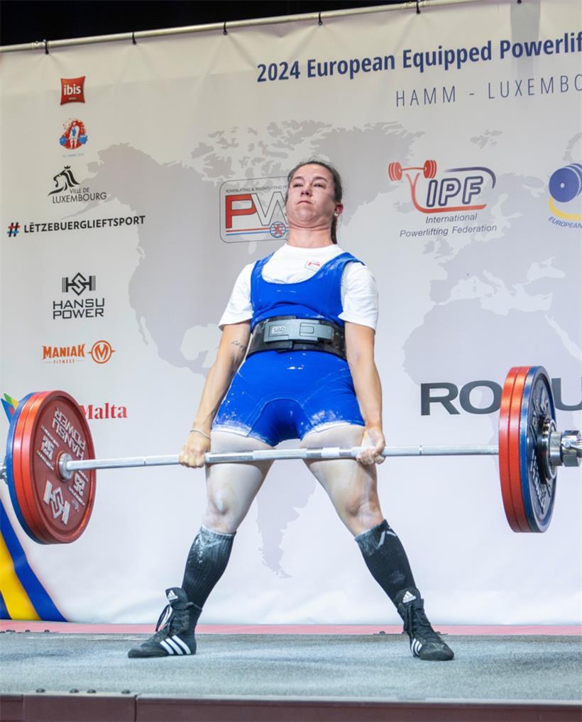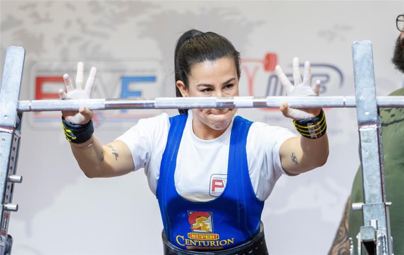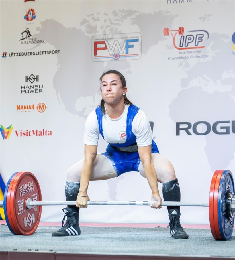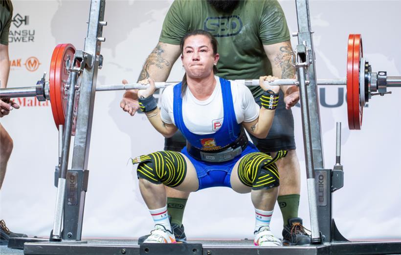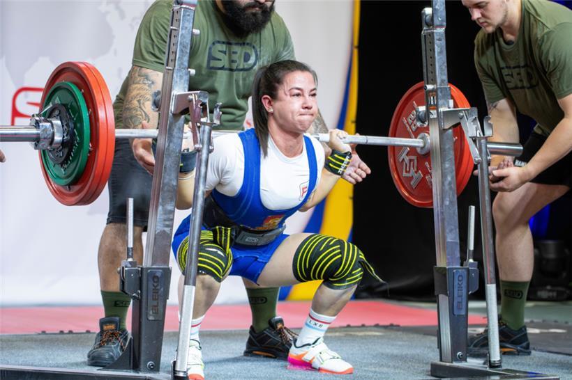 Die beste Leistung der Athletin im Squat bei dieser EM betrug 150 kg Foto: European Powerlifting Federation (EPF)