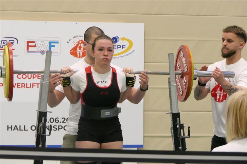 20 Rekorde an einem Tag: Nicht weniger als 20 neue nationale Bestmarken wurden an diesem Tag aufgestellt, von denen 13 in die Rekordbücher eingingen. Hier stachen vor allem die jungen Athleten aus Hamm, Emma Weydert (-63 kg, Junioren) und Tomás Vicente Santana (-83 kg, Subjunioren), hervor, die jeweils fünf bzw. sieben Rekorde erzielten. Weydert schraubte die neue Bestmarke auf 118 kg im Squat, 61 kg im Bench Press, 150 kg im Deadlift und 329 kg insgesamt hoch, wobei sie gleich zwei Rekorde im Kreuzheben aufstellte. Auch Vicente Santana steuerte einen Rekord nach dem anderen bei: Die neuen Bestleistungen betragen 200 in der Kniebeuge, 140 im Bankdrücken, 220,5 im Kreuzheben und 569,5 insgesamt. Bei den Open-Damen bis 63 kg beträgt nun die Last, die es im Squat zu übertreffen gilt, nach Nadia Bausterts Leistung 142,5 kg. Doch auch der große Beitrag von Najia Bennaoui (SC Hamm), die vor wenigen Monaten ihr Comeback gestartet hat, muss hervorgehoben werden: So hat die +84-kg-Athletin nicht nur ihren eigenen Landesrekord auf 158,5 kg im Squat erhöht, sondern ist auch in den beiden anderen Disziplinen sehr nahe daran, Geschichte zu schreiben. Mit 398,5 kg ist sie denkbar knapp von den 400 kg, die einen neuen Rekord bedeuten würden, entfernt. Unvergessen bleiben wird ihr Versuch von 172,5 kg im Deadlift, bei dem der Athletin die Langhantel in letzter Sekunde aus den Händen glitt. Weitere Rekorde gingen auf das Konto der Hamm-Junioren Ethan Scheepers (-74) mit 214,5 im Kreuzheben und Philippe Parage (+120) mit 290 in der Kniebeuge. Einen Masters-2-Rekord hat Silverbacks-Athlet Matthew Vincent (-105) mit 157,5 im Bankdrücken aufgestellt, während Kevin Nilles in der 74-kg-Open-Klasse die Bestmarke im Deadlift auf 224 kg erhöhte.