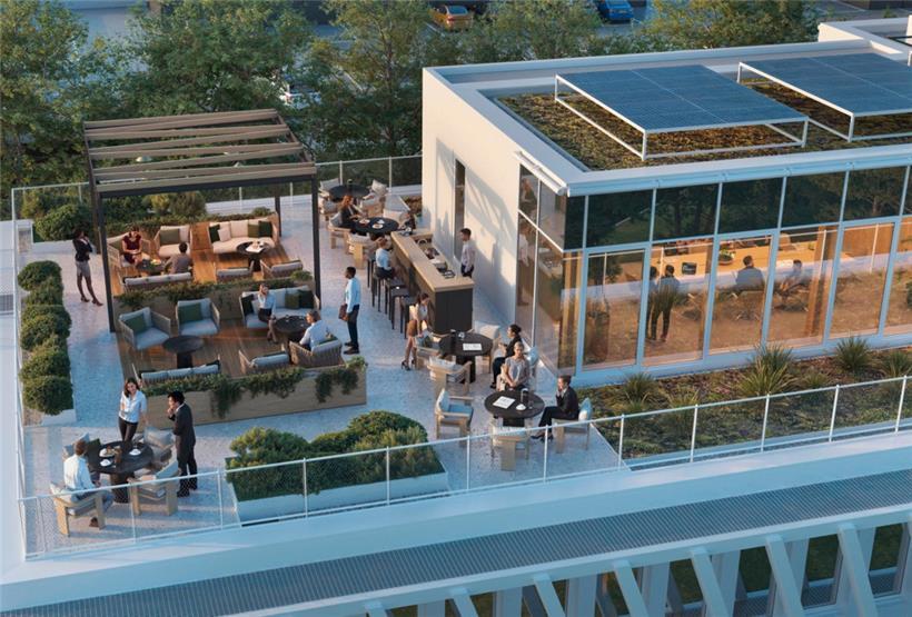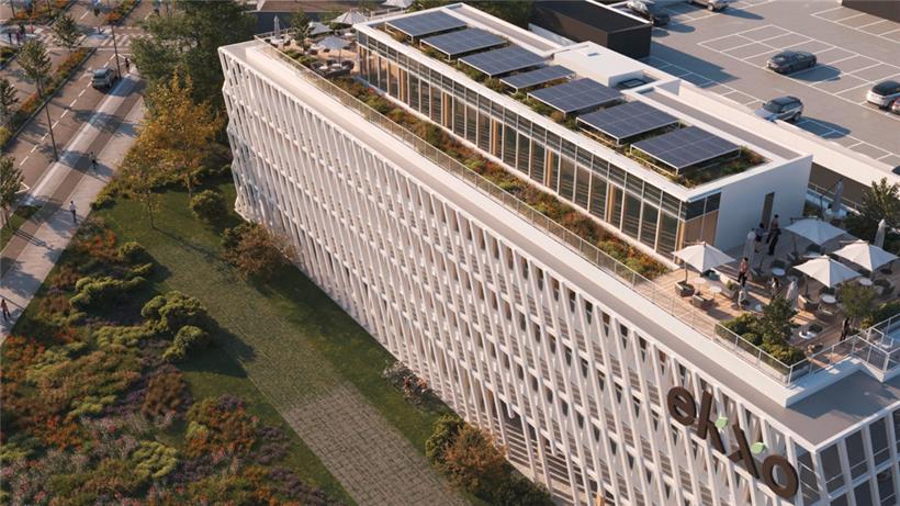 Das Gebäude namens „ekxo“ liegt direkt am boulevard Raiffeisen in der Nähe von Park und Tram. Mit seiner markanten Architektur zeichnet sich das 3.500 m² große Projekt durch ein Metallexoskelett aus, das das Licht im Tagesverlauf moduliert und dem Gebäude eine einzigartige visuelle Signatur verleiht, so IKO Real Estate. Es ist das erste Holzgebäude auf Cloche d’Or und wurde von Baumschlager Eberle Architekten entworfen.