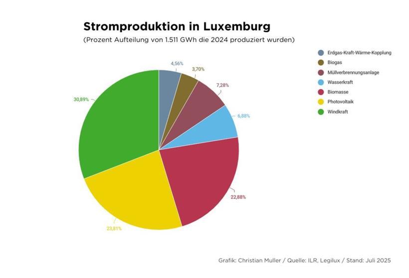 Im Jahr 2024 deckte Luxemburg so, angetrieben durch das Wachstum bei den Erneuerbaren, 24 Prozent des Landesverbrauchs durch inländische Produktion. Im Vorjahr waren es 22,3 Prozent, noch ein Jahr vorher erst 19 Prozent.