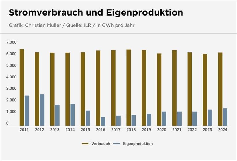 Jedoch hat letztes Jahr nicht nur die Produktion zugelegt. Das Gesamtvolumen des verbrauchten Stroms 2024 war 6.340 GWh. Das ist leicht mehr als im Vorjahr, doch in etwa gleich viel wie in den letzten Jahren.
