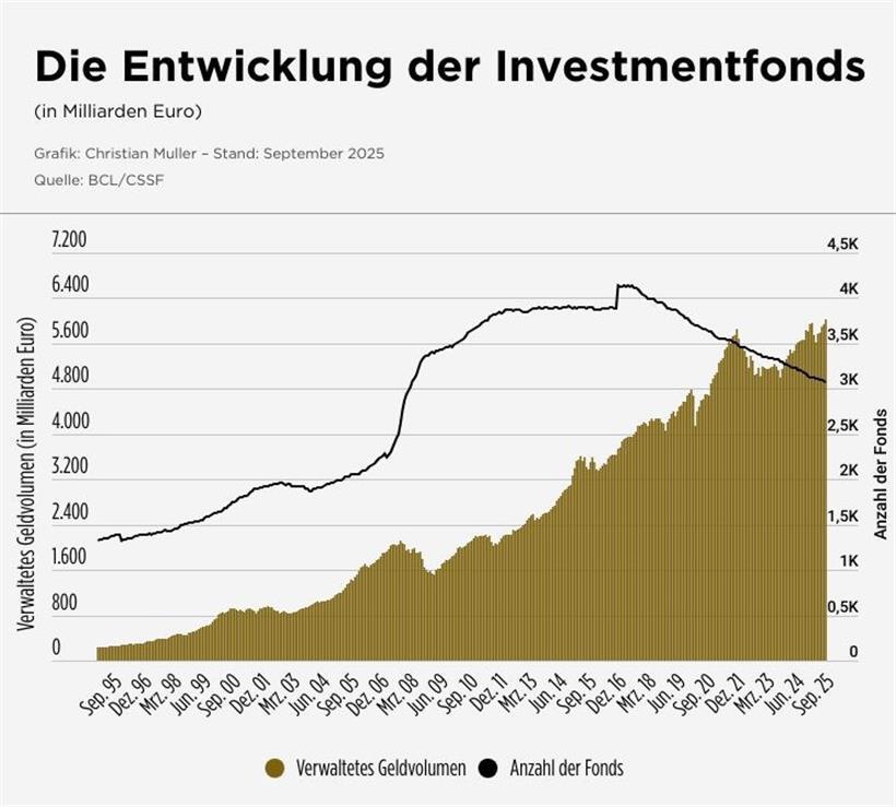 Nach einer langen Pause hat die Luxemburger Branche der Investmentfonds im September 2025 wieder einen neuen Rekord verbucht. Erstmals ist die Marke von 6.000 Milliarden Euro an verwalteten Geldern durchbrochen worden.
