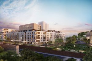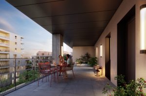 Das Gebäude „Liicht“ hieße so, weil Licht eine besondere Rolle spiele. Die Wohnungen, vom Studio bis zum Duplex, seien in einer Art Kaskadenform konzipiert, sie würden über große Fenster verfügen, große Terrassen, teilweise mit Garten – und so einen Panoramablick auf das ganze Gelände erlauben.