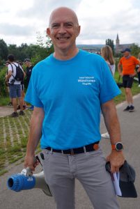 Wir treffen kurz vor dem Start auf Stéphane Cesari, den Präsidenten der FLSA. „Wir sind hocherfreut, nach dem Veranstaltungsausfall im vergangenen Jahr heute 34 Boote der unterschiedlichsten Klassen aus vier Nationen im Großherzogtum begrüßen zu können“, erklärt er uns. „Am Start sind 110 Aktive aus Luxemburg, Deutschland, Belgien und Frankreich, u.a. aus Trier, Saarbrücken, Brüssel, Lüttich, Mittersheim und Sarreguemines. Aus gegebenem Anlass und zur Sicherheit der Sportler verzichten wir allerdings bei der Siegerehrung am Nachmittag auf das ansonsten von uns angebotene Barbeque.“ Zu uns gesellen sich Christiane Bram, Vorstandsmitglied der FLSA, und ihre Kollegin Catherine Baudhuin, die in Schengen, gemeinsam mit der Jury den Zieleinlauf überwachen wird.