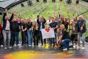 „Télévie bringt Menschen zusammen und schafft ein ganz eigenes Gefühl der Zugehörigkeit“, betonte Bürgermeister Michel Gloden. Seine Gemeinde war in diesem Jahr erstmals als Spendenzentrum dabei. Die Atmosphäre am Samstag sprach für sich: Den ganzen Tag über defilierten Spenderinnen und Spender auf der Bühne hinter der Cave du Sud in Remerschen – mitten in den Weinbergen – und erzählten, wie sie zum Gelingen des Télévie 2025 beigetragen haben. Ein besonderes Highlight war der Auftritt von Laura Thorn, Luxemburgs Vertreterin beim diesjährigen Eurovision Song Contest in Basel (10.-17. Mai). Ihr Lied „La poupée monte le son“, gesungen vor saftig grüner Rebenkulisse, verlieh dem Nachmittag eine ganz besondere Note, die es so bei einer Télévie-Veranstaltung wohl noch nicht gegeben hat.