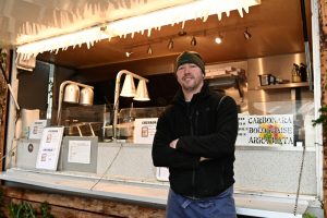 Szenenwechsel. Escher Weihnachtsmarkt, mittags gegen halb eins. Vorwiegend junge Leute sind auf dem Platz. In den ersten Tagen des diesjährigen Marktes sei viel los gewesen, sagt Paulo, mit 3G sei es ruhiger geworden. Mit 2G würde sicherlich nochmals ein Teil der Kunden ausbleiben, aber die Menschen seien erfinderisch. „Einer kommt, bestellt, bezahlt für alle und reicht das Essen durch die Absperrung oder nimmt es mit nach draußen“, so Paulo. Was den Essstand mit Schwenkgrill anbelangt, scheint man zur Mittagszeit mit größerem Andrang zu rechnen. Zahlreiche Mettis, Grillwürste oder Koteletts brutzeln wohlriechend vor sich hin.