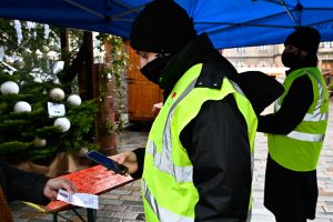 Seit Mittwoch gilt 2G auf dem eingezäunten „Krëschtmoart“ vor dem Rathaus. Nur wer geimpft oder genesen ist, darf hinein. Weder ein zertifizierter Schnelltest noch ein PCR-Test geben Zugang zu Grill, Glühwein und Geselligkeit. An beiden Eingängen wird aufmerksam kontrolliert.