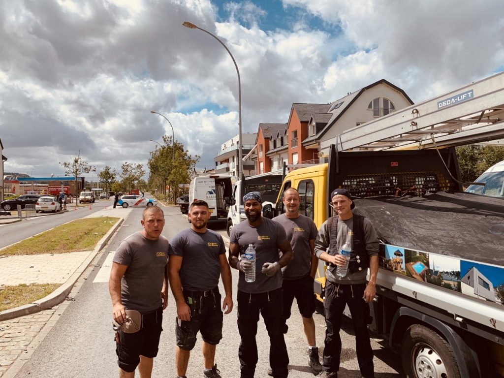 Die 16 Mann hatten an den beiden Wochenendtagen zweimal 12 Stunden am Stück gearbeitet (Gesamtstundenzahl: 384), als sie am Sonntagabend im Betrieb in Colmar-Berg völlig ausgepumpt ankamen. „Wir blieben noch kurz zusammen, redeten über das, was wir gesehen und gearbeitet hatten, feuerten noch den Grill an und tranken ein Bier. Eines wurde zu diesem Moment klar: Dieser Einsatz hatte unser Team und auch das vom ’Den Daachdecker‘ nahtlos zusammengeschweißt“, sagte der Betreiber der Firma Toiture Moderne. Die stets gute Atmosphäre im Betrieb habe sich seit dem Wochenende noch verbessert.