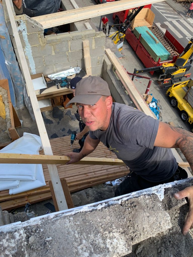 Jim Nesen absolviert zurzeit im Betrieb von Schumacher in Colmar-Berg seine Lehre als Dachdecker. „Über diesen Weg kam am frühen Samstag eine Zusammenarbeit zustande, die über das ganze Wochenende ihre Früchte trug. Der Vater von Jim, Raymond Nesen, rief zurück und gab mir zu verstehen, dass auch er sich mit weiteren drei Mitarbeitern am Einsatz beteilige.“