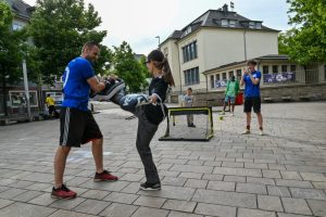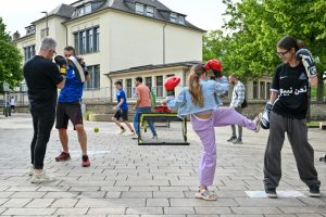 Einfach mal mitten in der Stadt Tischtennis spielen, das thailändische Boxen „Muay Thai“ ausprobieren oder mit Hockeyschlägern über den Rasen laufen – das war während der sogenannten „Nuit du sport“ am Samstagabend möglich. Bei bestem Wetter bot das lokale Jugendhaus auf der Bonneweger Place Léon XIII diese drei Sportarten an. Aber auch in anderen Vierteln standen die Abendstunden ganz im Zeichen der Bewegung.