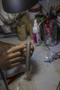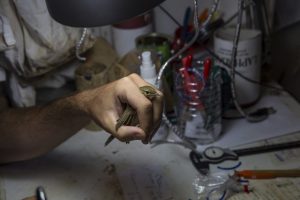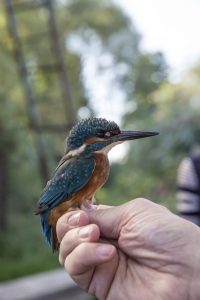 Dass er bereits ein Gefühl dafür entwickelt hat, wie er die fragilen Tiere am besten anpackt, ist ihm anzusehen, als er eine Blaumeise aus dem Stoffsäckchen nimmt. „Das ist gar nicht so einfach“, sagt Kevin Kohn, der seit vier Jahren dabei ist und ihm gegenübersitzt. „Am Anfang muss man erst herausfinden, wie weit man gehen kann, bis man dem Vogel wehtut.“