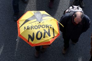 Aber da hat sich der Protest bereits organisiert. Die Bauern wollen ihr Land nicht hergeben, die Abneigung gegen das Großvorhaben findet Zuspruch. Das Gelände wird besetzt. Als unter Staatspräsident Hollande die Baugenehmigung erteilt wird und der Baubeginn bevor steht, kommt es bei einem Räumungsversuch vor den Fernsehkameras zu gewaltsamen Auseinandersetzungen. Premierminister Jean-Marc Ayrault bricht die Räumung ab. Die Regierung setzt eine Konsultation der Bevölkerung an, begrenzt sie auf ein Département, das sich für den Bau ausspricht. Dennoch geschieht nichts. Die Regierungen unter Präsident Hollande hüten sich, noch einmal eine Räumung zu versuchen.