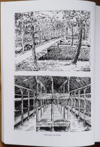 Zitat Metty Scholer, Seite 108/109 : „1943 sin deng eischt Bewunner agezunn … Woch fir Woch sin „néi Letzebuerger“ uko’m, de’ eng aus dem E’sleck, anerer vun der Musel oder aus der Minettsge’gend, an och aus dem Gutland. … Lues a Lues hun mir eis op eng bestömmt Barâck konzentréiert an hun e’ Barâckechef aus eisen Reien bestömmt. Mir wollten önnert ons sin…. Als Natioun huet ons eppes dach gefeelt, natirlech de’ aner haten et och nach nit, an zwar e’ Fendel. D’Idee war gutt, awer wo’ dat neidegt Stoff hierhuelen …“