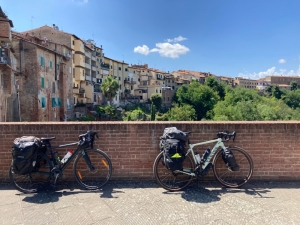 Das richtige Material ist bei einer solchen Exkursion allerdings essenziell. Die beiden haben sich für die Reise ein Gravelbike zugelegt. Das ist eine Mischung aus Rennrad und Mountainbike, die vielseitig einsetzbar ist. Hinzu kommen Zelt, Matratzen, Kleidung … Alles muss in einer besonders leichten Variante gekauft werden. Das gesamte Gepäck wird schlussendlich in Fahrradtaschen eingepackt. Ein spezielles Vorbereitungstraining absolvierten Lops und Klein nicht. „Wir fahren seit Jahren sehr viel mit dem Fahrrad“, sagt Klein. Das heiße allerdings nicht, dass sich nur besonders erfahrene Fahrer an Radreisen herantrauen. Die beiden sind während ihrer Europa-Tour allerdings auch unerfahrenen Fahrradfahrern begegnet. „Der Körper passt sich an“, meint Klein.