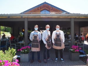 Ähnlich erging es in den ersten Tagen der Wiedereröffnung den Kellnern des „Mess Café“ in Reckingen/Mess. Während hier die Kundschaft wie gewohnt zahlreich erschienen ist, haperte es bei der Maskenpflicht bei so manchem. „Wir müssen die Gäste regelmäßig darauf hinweisen, dass sie schon beim Betreten der Terrasse die Maske tragen müssen und dies auch beim Gang zur Toilette gilt. Es dauert wohl einige Tage, bis jeder sich daran gewöhnt hat, aber es gibt schon mal Diskussionen, weil viele das Tragen des Mundschutzes im Restaurant unlogisch finden, wenn sie doch am Tisch selbst ohne sitzen dürfen“, erklärt Luca Fumarola, dessen Eltern das Restaurant besitzen. Während der Quarantäne hat das Team profitiert, anstehende Arbeiten im Innen- und Außenbereich machen zu lassen. Die Wiedereröffnung kam dann aber doch etwas schneller als geplant: „Hier war noch eine riesige Baustelle, weil wir alles renoviert haben. Auf einige Sachen für die Terrasse warten wir immer noch.“