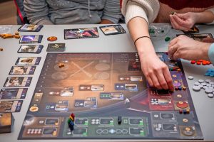 Besonders gut kam an diesem Abend das Spiel „Dune: Imperium“ bei den erfahreneren Spielern an. Es knüpft an die Romane des amerikanischen Science-Fiction-Autors Frank Herbert an und entführt die Teilnehmer auf einen entfernten Planeten. Ähnlich wie in den Büchern stehen sie am Anfang erst einmal mit leeren Händen dar. Die Ausrüstung und Raumschiffe muss man sich erst verdienen, indem man unterschiedliche Karten spielt. „Das Spiel sieht auf den ersten Blick aus, als würde es schnell zu spielen sein. Das täuscht allerdings. Mit vier Spielern kann sich eine Partie schon über mehrere Stunden ausdehnen“, erklärt Morhs. Bei Fragen stehen die Mitglieder der Ludoland Asbl. den Spielern natürlich auch mit Rat und Erklärungen zur Seite.