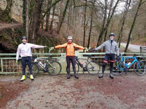 Der sicherste Weg, das Festive500 zu schaffen, ist, es gemeinsam mit Freunden in Angriff zu nehmen. Wir waren zu viert: Christophe, Matthieu, Mich. und ich. Der Plan war, jeden Tag bei jemand anders zu starten. Und die Sache nicht zu schnell anzugehen. Will heißen, neben einem flachen Streckenprofil sollte auch das Tempo niedrig gehalten werden. Das klappte am 24. Dezember ganz gut. Wir starteten mit etwas Verspätung, da ich noch das Fondue-Fleisch für den Abend abholen musste. Trotzdem standen zum Schluss 92 Kilometer auf dem Radcomputer. Ein guter Auftakt mit relativ wenig Regen auf einer wunderbaren Strecke entlang der Sauer und durch das Müllerthal. Abends dann das erste Festessen.