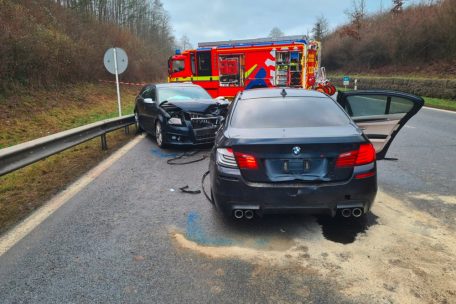 Polizisten sind am Samstagnachmittag gegen 13 Uhr während einer Patrouille auf einen Verkehrsunfall auf der B7 zwischen Ettelbrück und Ingeldorf gestoßen. Drei Fahrzeuge waren kurz hinter der Brücke verunfallt. Zwei Verletzte lagen auf dem Boden – die Patrouille führte Erste-Hilfe-Maßnahmen durch.
