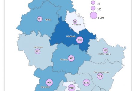 Nach wie vor ist der Kanton Esch offenbar am stärksten von der Pandemie betroffen. Insgesamt wurden dort in den vergangenen drei Wochen 4.434 positive Fälle registriert. Diekirch liegt mit 810 neuen Coronainfektionen in dieser Statistik auf dem zweiten Platz. Die wenigsten Neuinfektionen gibt es im Kanton Vianden, wo 85 neue Fälle verzeichnet wurden.