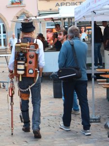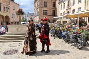 Jedes Jahr treffen sich Steampunk-Begeisterte in Echternach. Obschon die Convention eher klein ist und keine hunderte Stände zählt, ist sie bei Jung und Alt beliebt, denn die malerische Kulisse des kleinen Städtchens an der Sauer bietet den perfekten Schauort. Bewohner, Radfahrer und Touristen freuten sich am Wochenende wieder über die besonders gekleideten Gäste, denn diese verleihen der Convention ihre Seele. Begleitet wurde das Ganze abermals von den Klängen der Musikgruppe Tales of Nebelheym und auch der traditionelle Trödel-, Antiquitäten- und Handwerkermarkt durfte am Wochenende nicht fehlen.