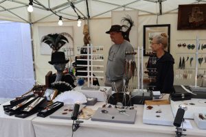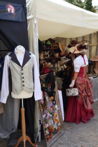 Die Künstlerin selbst trug am Sonntag eine ihrer allerersten Kreationen, die sie ebenfalls per Hand modellierte: „Zu Beginn habe ich viele alte Hüte überarbeitet. Nun stelle ich die meisten selbst her, mithilfe von Hutformen aus Holz von 1800.“ Auch handgemachte Schulterbedeckungen, formbare Bänder und Dekoartikel konnte man bei „Esprit de Mélusine“ bestaunen. Der Andrang am Stand war jedenfalls groß.