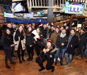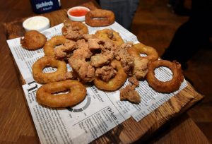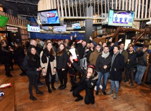 Los ging es um 18 Uhr im Restaurant Chimi Churri – auf Kirchberg natürlich. Die Kneipengänger (die sich vorher registrieren mussten) konnten dort die Getränkegutscheine abholen und sich für die Tour stärken. Um 19.45 Uhr fuhr die Tram die Alkoholfreunde dann in den nächsten Laden – der Sportsbar im Kinepolis. Danach rollten die Partygänger noch in die JFK Bar und ins Restaurant Manso. In jeder Kneipe gab es (neben Getränken) auch einen Happen zu essen.