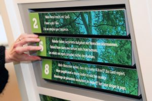 „Das Thema Demokratie wird – nicht nur für sie – meistens zu akademisch behandelt“, sagt er. „Sie müssen sie spüren, sie ist Teil ihres Lebens.“ Daraus ist die Idee entstanden, Demokratie erfahrbar zu machen – an sich selbst und in alltäglichen Situationen. Zu zweit absolvieren Besucher die Stationen mit den Aufgaben, um im Dialog ihre Sicht zu prüfen und zu schärfen.