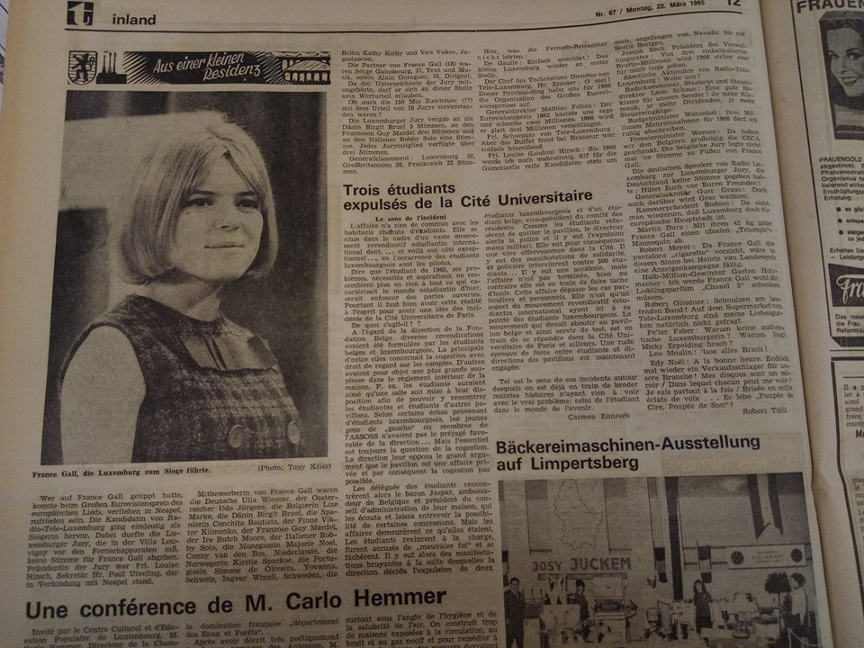 Der nächste Artikel erschien in der Montagausgabe des Tageblatt vom 22. März 1965. Auf Seite 12 schrieben wir: „Wer auf France Gall getippt hatte, konnte beim Großen Eurovisionpreis des europäischen Lieds zufrieden sein.“ Gall sei „eindeutig“ als Siegerin hervorgegangen.