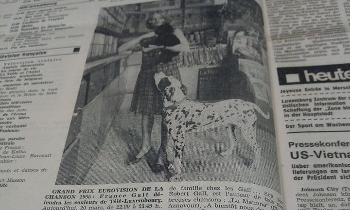 20. März 1965. Auf der letzten Seite der Samstagausgabe des Tageblatt ist ein Foto einer jungen Frau zu sehen. Sie hält einen kleinen Hund im Arm, neben ihr steht ein Dalmatiner, der zu ihr hochblickt. France Gall ist damals zarte 17 Jahre alt und hat ein Jahr davor ihre Karriere in der Musik gestartet, nachdem sie ihre Schule, das „Lycée Paul Valéry“, mit 16 Jahren verlassen hatte.