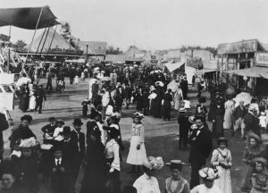 Nach dem dritten Umzug der „Fouer“, nämlich vom Limpertsberg auf den Glacis, lassen sich nach 1893 in der Schefferallee Cafés und Tanzlokale nieder, die während der „Fouer“-Zeit ein spezielles Programm anbieten. Es gibt Marionettentheater, Schaubuden, Varietés, wie „Die Berliner Luft“ mit Artisten und Akrobaten, was wir eher aus dem Zirkus kennen und heute nicht mehr auf dem Jahrmarkt vertreten ist.