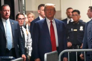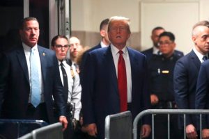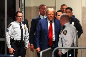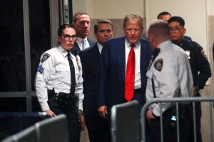 NEW YORK, NEW YORK - MARCH 25: Former U.S. President Donald Trump arrives for a pre-trial hearing in a hash money case in criminal court on March 25, 2024 in New York City. Trump was charged with 34 counts of falsifying business records last year, which prosecutors say was an effort to hide a potential sex scandal, both before and after the 2016 election. Judge Juan Merchan is expected to set a new start date for the trial after it was delayed following the disclosure of new documents in the case. Spencer Platt/Getty Images/AFP (Photo by SPENCER PLATT / GETTY IMAGES NORTH AMERICA / Getty Images via AFP)
