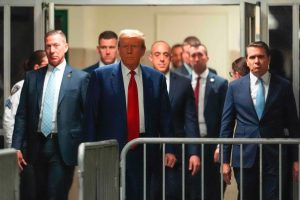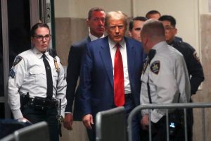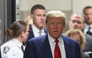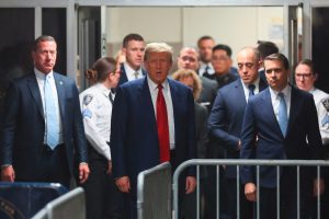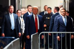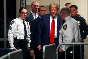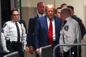 NEW YORK, NEW YORK - MARCH 25: Former U.S. President Donald Trump arrives for a pre-trial hearing in a hash money case in criminal court on March 25, 2024 in New York City. Trump was charged with 34 counts of falsifying business records last year, which prosecutors say was an effort to hide a potential sex scandal, both before and after the 2016 election. Judge Juan Merchan is expected to set a new start date for the trial after it was delayed following the disclosure of new documents in the case. Spencer Platt/Getty Images/AFP (Photo by SPENCER PLATT / GETTY IMAGES NORTH AMERICA / Getty Images via AFP)
