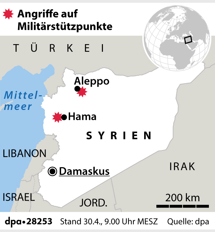 Die meisten Todesopfer am Sonntag gab es laut den Menschenrechtlern bei dem Angriff auf das Hauptquartier der 47. Brigade westlich der Stadt Hama im Zentrum des Landes. In dem bombardierten Gebiet sind auch mit Syrien verbündete iranische Truppen stationiert. Die meisten der Opfer seien Iraner, hieß es von den Menschenrechtlern. Der Iran dementierte über seine Nachrichtenagentur Isna dagegen, dass auch iranische Soldaten getötet worden seien. Isna selbst hatte zuvor unter Berufung auf ausländische Quellen von 18 toten Iranern berichtet.