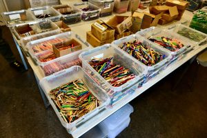 Die Vermittlung von wiederverwendbaren Gegenständen steht heute im Mittelpunkt der Arbeit. Jedes Jahr werden über 100 Tonnen Material wiederverwertet. In Schifflingen ist man auch längst auf den Weg gegangen, dass man gezielt Sachen für Kunden sammelt. „Allerdings nicht für Privatpersonen“, präzisiert Falkenstein; man wolle keine privaten Geschäfte fördern. „Vor allem arbeiten wir mit Schulen, ‚Maisons relais‘ und Vereinigungen zusammen, die auf der Suche nach bestimmten Materialien sind.“ In einem Container zeigt uns Falkenstein Tüten mit Schulschachteln, die zum Abholen bereitstehen.