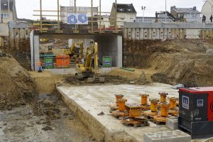Am Ostermontag gingen die Arbeiten an der Unterführung in Schifflingen weiter, nachdem in der Nacht von Sonntag auf Montag die 1.400 Tonnen schwere Bahnunterführung mithilfe eines Hydrauliksystems unter die Bahnstrecke in Schifflingen geschoben worden war. Durch die neue Unterführung wird in Zukunft der Verkehr in Richtung oder aus dem Stadtzentrum von Schifflingen fließen.