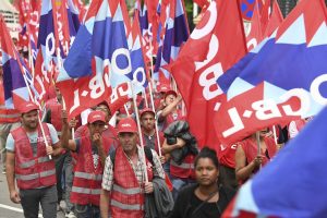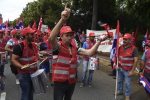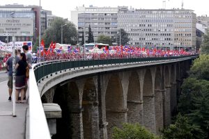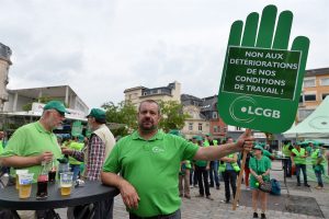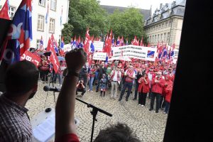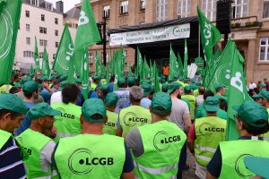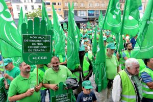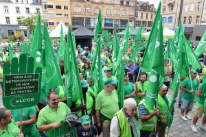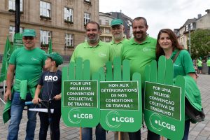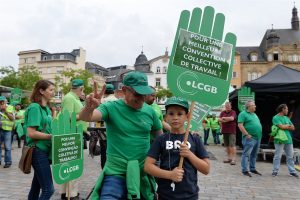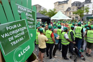 Gleichzeitig setzten die Aktivisten sich dafür ein, dass der Kollektivvertrag auch beim Verwaltungspersonal Anwendung findet. Gleichzeitig zur Demo des OGBL fand eine Kundgebung des LCGB in Esch statt. Ursprünglich hatten beide Gewerkschaften in der Sache zusammen agiert – zum Beispiel gemeinsame Pressekonferenzen gegeben. Dann aber hatte der LCGB sich gegen eine gemeinsame Demonstration entschieden und eine eigene im Süden des Landes organisiert.