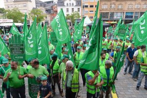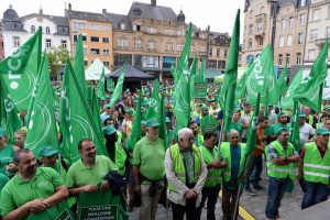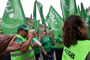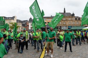Bei einer großen Demo gestern in Luxemburg-Stadt kamen trotz des schlechten Wetters 900 Menschen, um sich für einen neuen Kollektivvertrag starkzumachen. Sie fordern eine Steigerung von 4,5 Prozent der realen Löhne. Damit gemeint ist, dass jeder 4,5 Prozent mehr erhalten soll. Rund 70 Prozent der Mitarbeiterinnen und Mitarbeiter des Sektors bekommen nicht genau die in der Lohntabelle festgehaltenen Löhne. Sie würden von einer Anpassung der Lohntabelle nicht oder nur teilweise profitieren können.