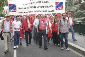 „Das Patronat hat ein kurzes Gedächtnis. 2013 wollte es schon mehr Flexibilität einführen“, sagte Jean-Luc De Matteis, beim OGBL zuständig für den Bausektor. Das hätte damals zu einer Streikwelle geführt, die die Arbeitgeber zum Einknicken gebracht hätte. Auch jetzt seien die Gewerkschaftler zu allem bereit. Eine geschlossene Gewerkschaftsfront habe es werden sollen, so De Matteis. „Leider hat der LCGB uns mitgeteilt, dass deren Direktion entschieden hat, nicht mit uns zusammen zu demonstrieren. Jetzt müssen sie ihren Mitgliedern erklären, warum sie sich entsolidarisiert haben und die Baubranche verraten haben.“
