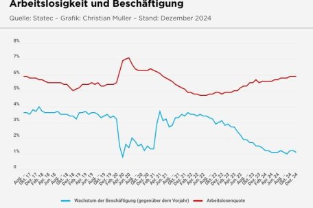 Die Schaffung neuer Arbeitsplätze hat sich zuletzt aber deutlich verlangsamt. Seit Dezember 2023 ist es ein Plus von 5.450 neuen Arbeitsplätzen. Im Vorjahr waren es mehr als 7.600 und im Jahr davor fast 16.000 neue Stellen.