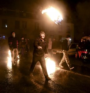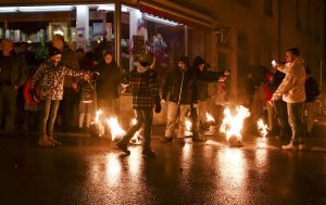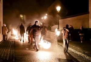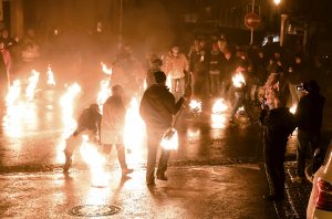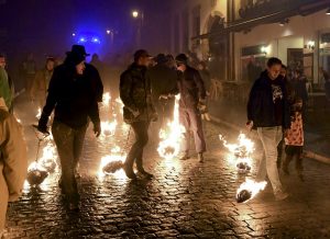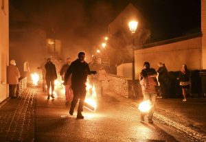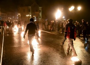 An zwei gegenüberliegenden Hügeln werden Tannen mit Brennmaterial angezündet, die die Teilnehmer zuvor errichtet haben. Mit einem lauten Knall wird auf beiden Seiten der Umzug eingeleitet. Mit Fackeln aus in Rohöl getränkten Lumpen, die in einem Käfig aus Maschendraht eingeschlossen sind und an einer Leine geführt werden, ziehen die Viandener von ihrem jeweiligen Hügel aus ins Tal, wo sich beide Gruppen vereinen, um dann geschlossen durch den Ortskern zu marschieren. Dabei wirbeln sie ihre Fackeln durch die Luft und schlagen sie fest auf den Boden.