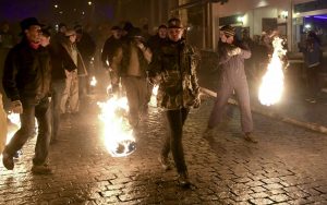 Die Effekte, die in der Dunkelheit der Nacht entstehen, sind beeindruckend. Das ganze Ritual mutet sehr archaisch und bisweilen militaristisch an. Verstärkt wird dieser Eindruck dadurch, dass manche Teilnehmer im Flecktarnmuster gekleidet sind und die meisten ihr Gesicht mit Tarnfarbe bemalen oder mit einem Schal vermummen.
