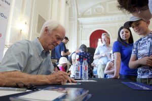 Im Rahmen des „Asteroid Day“, dessen Sinn grundsätzlich darin besteht, die Allgemeinheit über die Gefahren eines Asteroideneinschlags aufzuklären, hatte die Luxembourg Space Agency drei gestandene Raumfahrer nach Luxemburg eingeladen. Sie stellten sich auf der „Meet & greet“-Veranstaltung im Cercle Cité für Autogramme und Fotos zur Verfügung. Die drei Stargäste waren Russell „Rusty“ Schweickart, ehemaliger Astronaut bei der NASA, der durch seinen Einsatz bei der Apollo-9-Mission bekannt wurde, Dr. Edward Lu, ebenfalls US-amerikanischer Astronaut und Mitgründer der „B612 Foundation“, sowie Dorin Prunariu, der erste und einzige rumänische Kosmonaut.