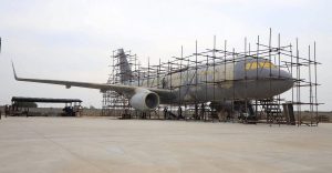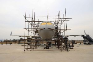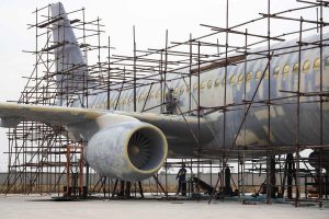 Zhu nutzte ein Spielzeugmodell eines Airbus A320 im Maßstab 1:80 und studierte Internet-Fotos, um sich über Abmessungen und Aussehen zu informieren. Dann begann er, Rumpf, Flügel, Cockpit und Turbinen nachzubilden. Dafür verwendete er 60 Tonnen Stahl.