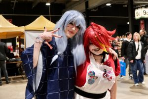 Teodora Isac, 19, und Kenza Dos Santos Gomes, 18, waren ebenfalls aus Deutschland angereist und cosplayen regelmäßig zusammen. „Wir lieben Videospiele, Comics, Anime – deswegen sind wir hier“, sagte Kenza. Ihre Perücke für Niffty hat sie in zwei Tagen gestylt, geschnitten, mit Haarspray in Form gebracht. Freundin Teodora hat allein für das Make-up zwei Stunden eingeplant.