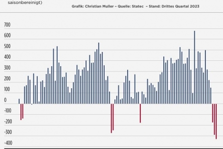 Auch beim statistischen Institut Statec hofft man auf fallende Leitzinsen. Nach einer kleinen Rezession von minus einem Prozent soll die Wirtschaftsleistung 2024 dann wieder um zwei Prozent zulegen. Die Hoffnung auf fallende Zinsen teilt Statec mit vielen Marktbeobachtern, die hervorheben, dass die Inflationsrate heute nicht mehr so hoch ist wie noch vor einem Jahr und dass der Bedarf für hohe Zinsen demnach nicht mehr gegeben ist.