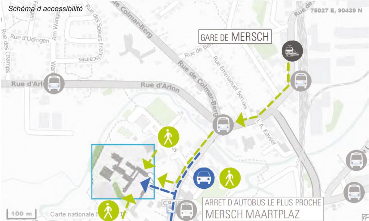 Mehr Schüler heißt automatisch mehr Schultransport. Etwaigen Problemen will die Gemeinde jetzt schon aus dem Weg gehen. Deswegen soll unter anderem die Bushaltestelle auf der „Méchelsplaz“ neu gestaltet werden, denn hier kommt ein Großteil der Lyzeumsschüler morgens an. Aber auch der Schulweg vom Bahnhof zu dem im Zentrum von Mersch liegenden Gebäude soll sicherer werden. Denn aktuell müssen Schüler die viel befahrenen Zentrumsstraßen überqueren. Jetzt soll einerseits durch die Renovierung des Bahnhofs ein Teil der Schüler durch den Park und sichere Nebenstraßen geleitet und die rue Grande-Duchesse Charlotte zum „shared space“ mit breiteren Gehwegen werden.